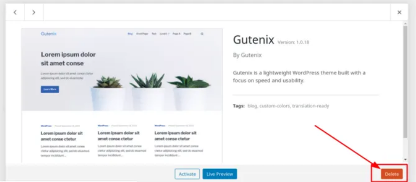 The way you install a theme, you can also delete a theme. you can easily delete your theme from your WordPress dashboard. Like this, But remember you cannot delete your activated theme.